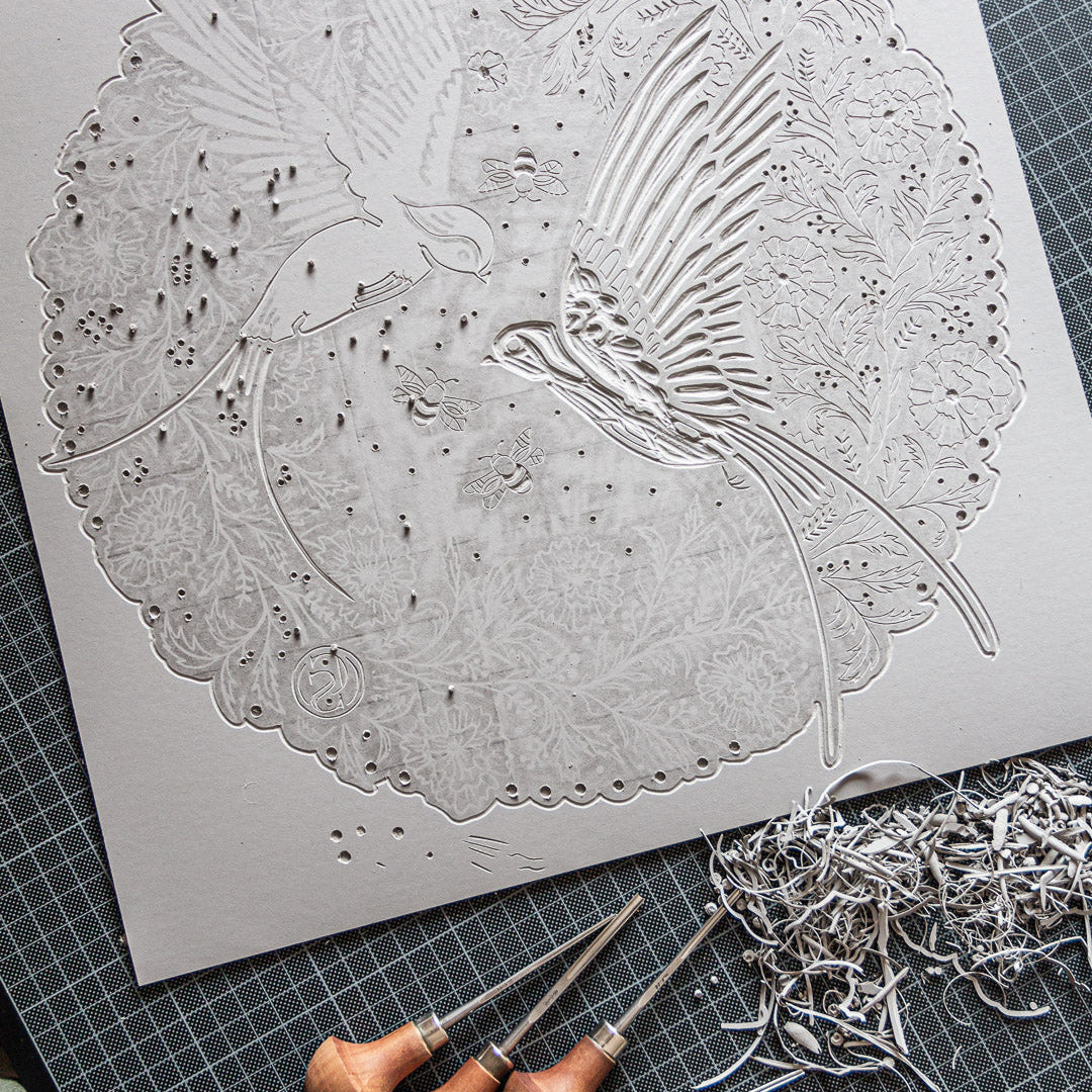Linoldruck auf handgeschöpftem Papier