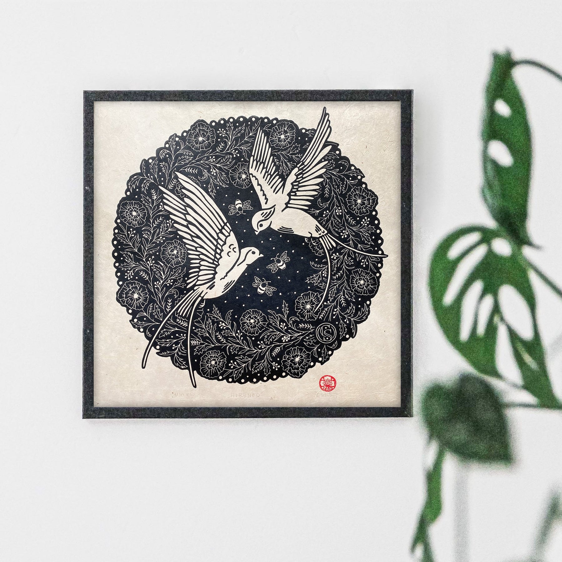 Den Schwalben könnte ich im Sommer stundenlange zusehen, wie sie akrobatisch und gekonnt Insekten fangen. Inspiriert von der Natur in meinem Garten, ist diese Idee für einen Linoldruck in meiner Hängematte entstanden. Umgeben von floralen Mustern bringt das Motiv die Leichtigkeit und Freiheit des Sommers in dein Zuhause. Ein besonderes Stück für alle, die die Natur genauso lieben wie ich. 🖤