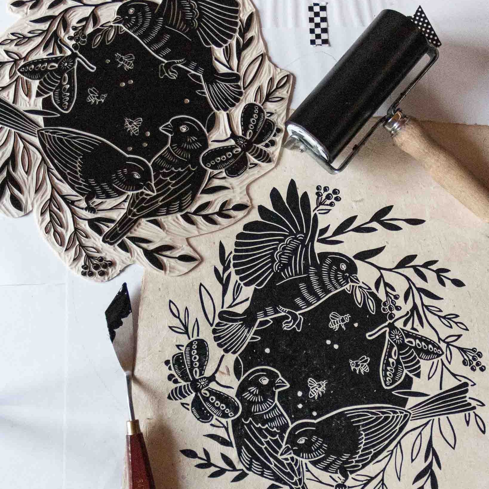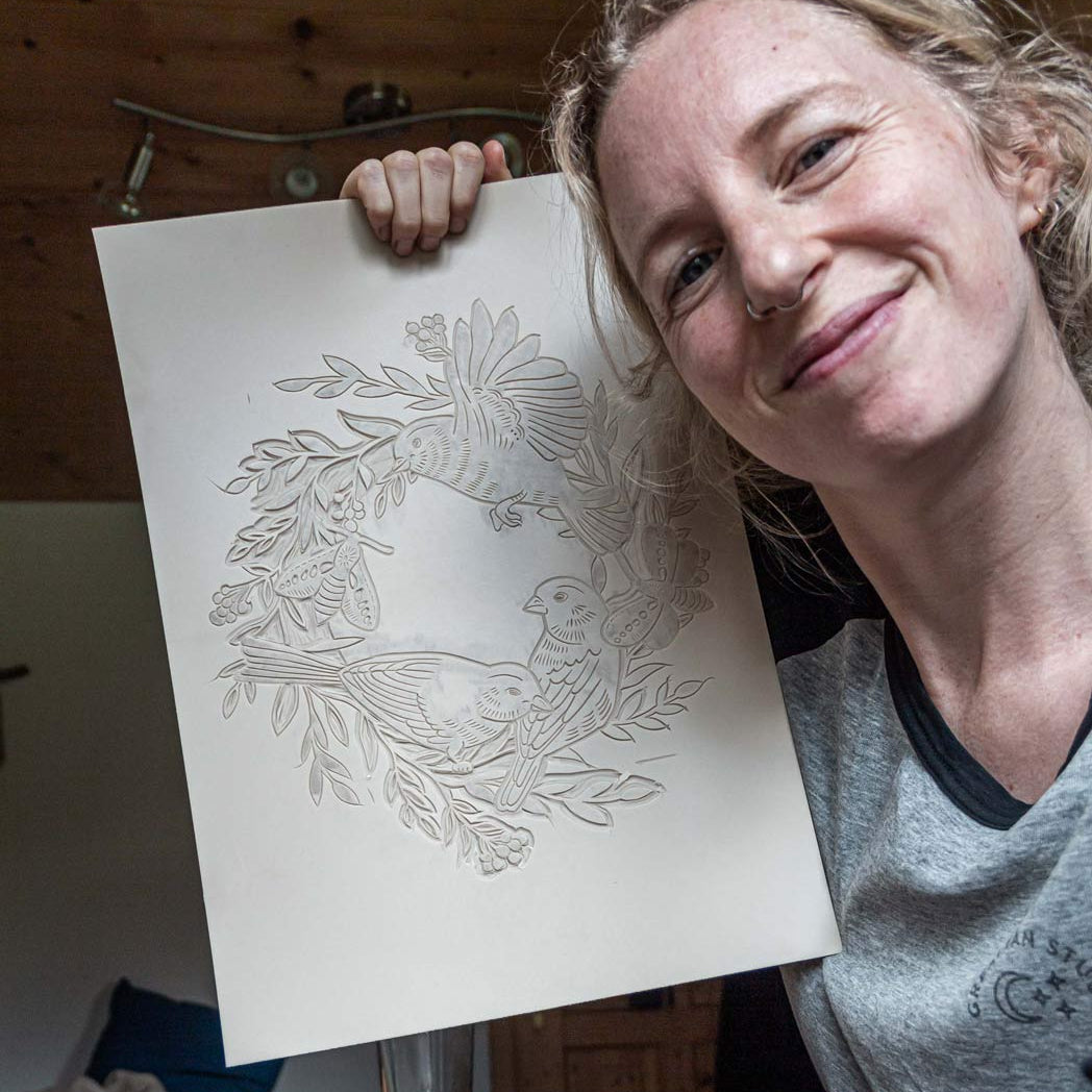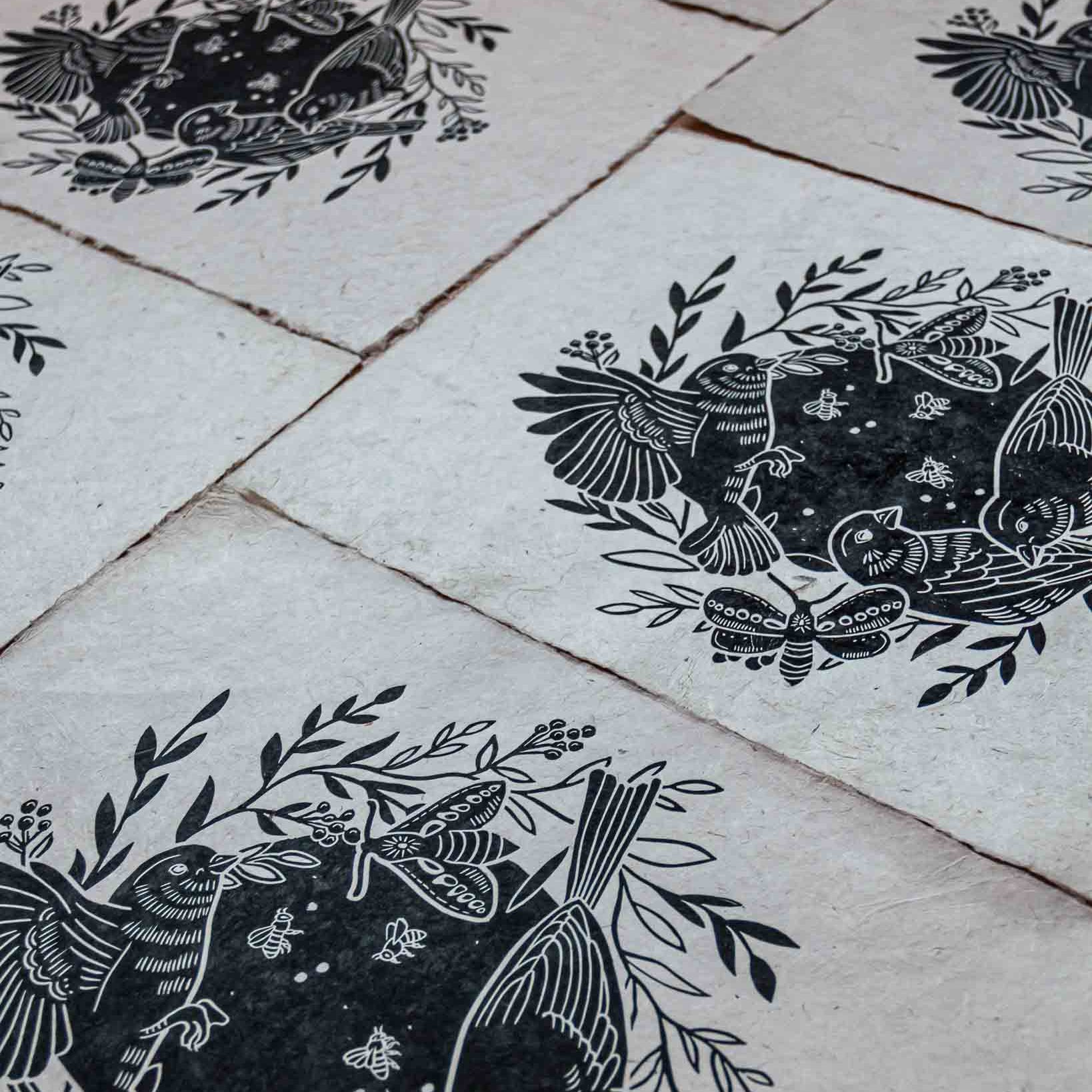 Linoldruck auf handgeschöpftem Papier