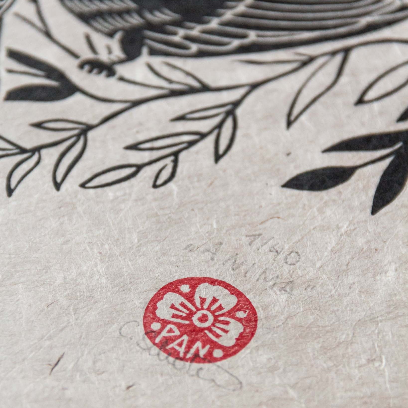 Ich drucke jeden Linoldruck händisch (mit Tinte auf Ölbasis) per Druckerpresse – somit ist jedes Exemplar ein echtes Unikat. Auf der Vorderseite findest du Nummer, Titel und meine Signatur und auf der Rückseite das Datum des Drucks.