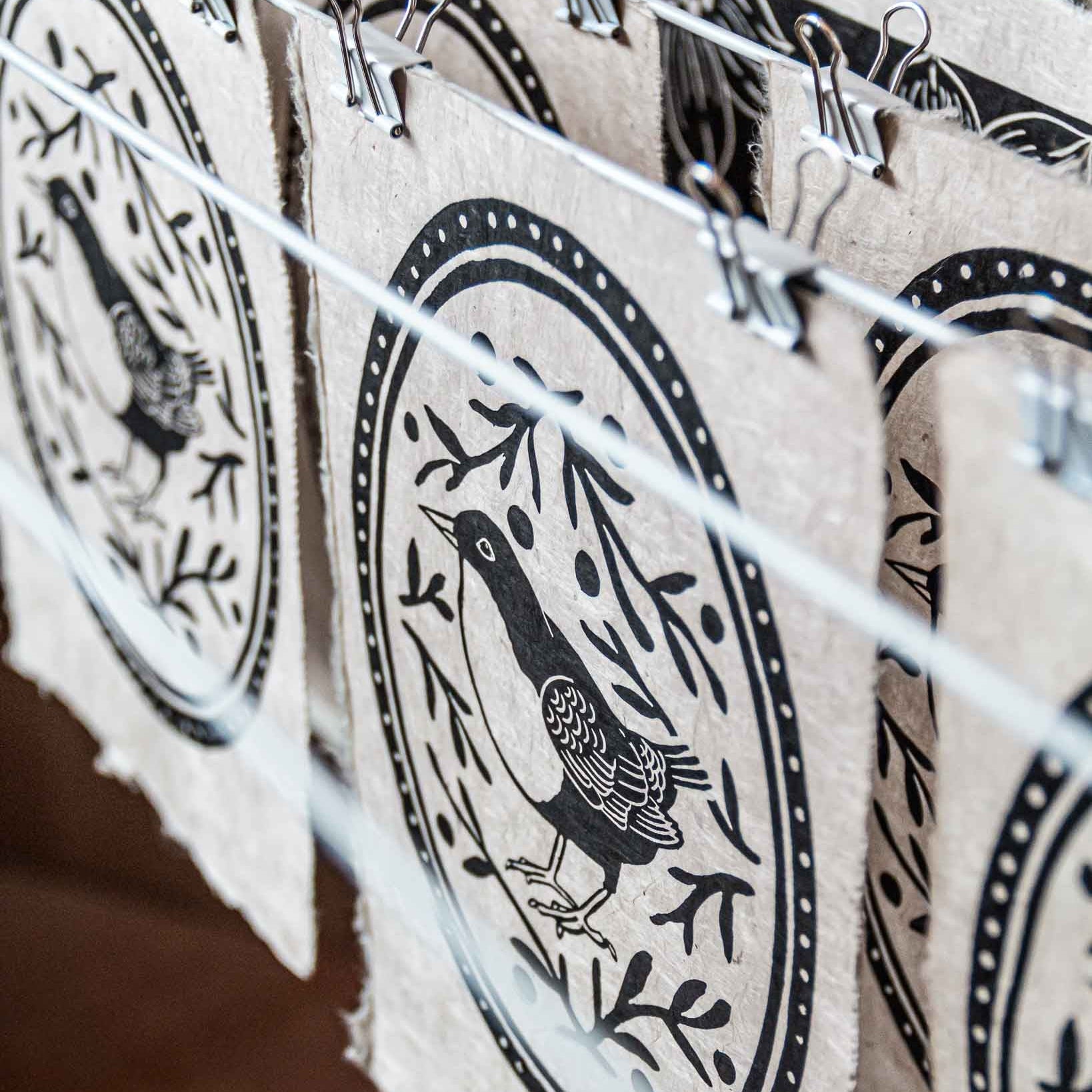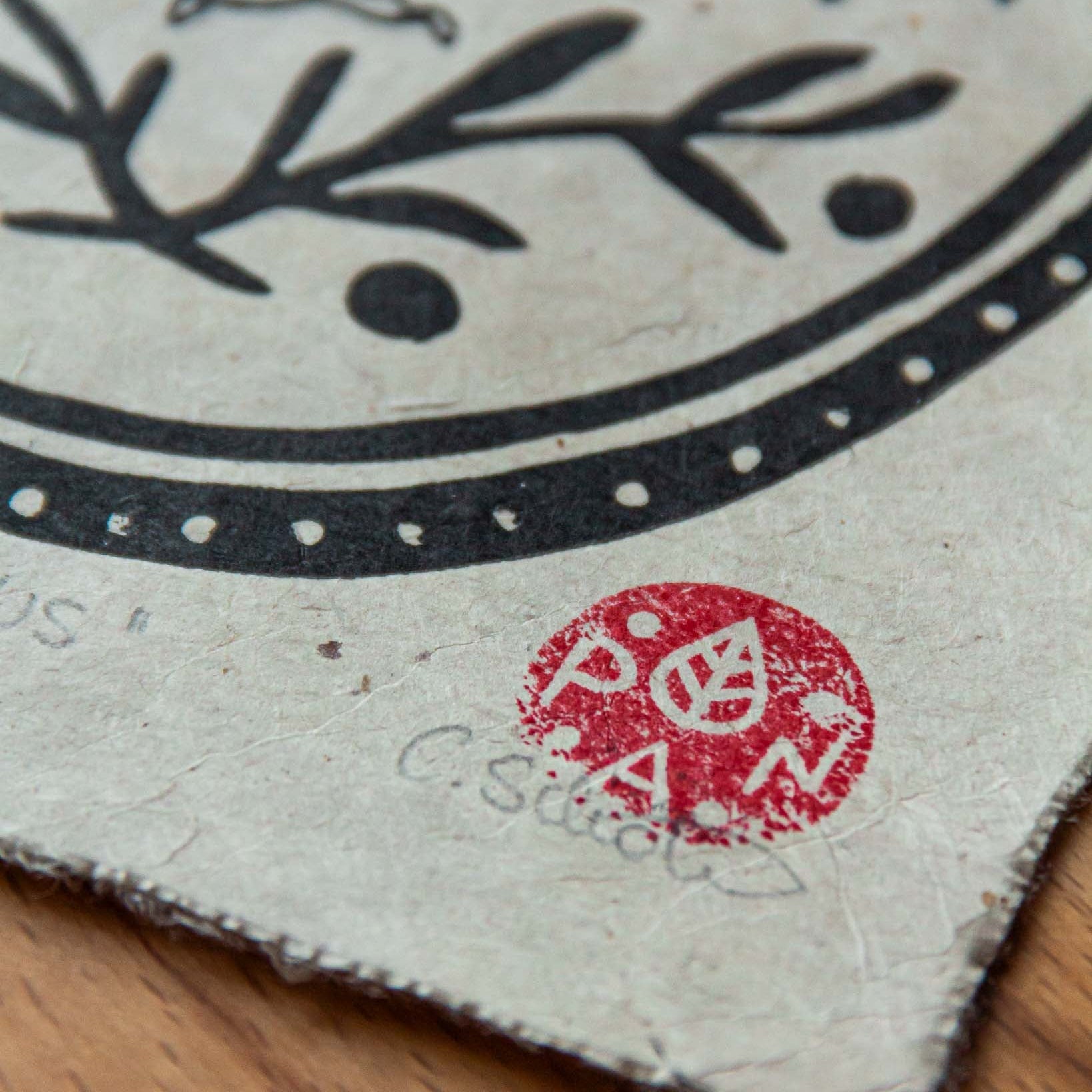 Ich drucke jeden Linoldruck händisch (mit Tinte auf Ölbasis) per Druckerpresse – somit ist jedes Exemplar ein echtes Unikat. Auf der Vorderseite findest du Nummer, Titel und meine Signatur und auf der Rückseite das Datum des Drucks.